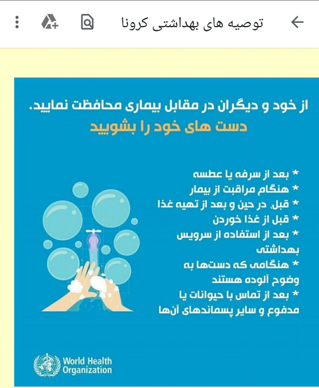 | توصیه های بهداشتی دربرابر ویروس کرونا | تراکت وپمفلت | بارگیری فایل |