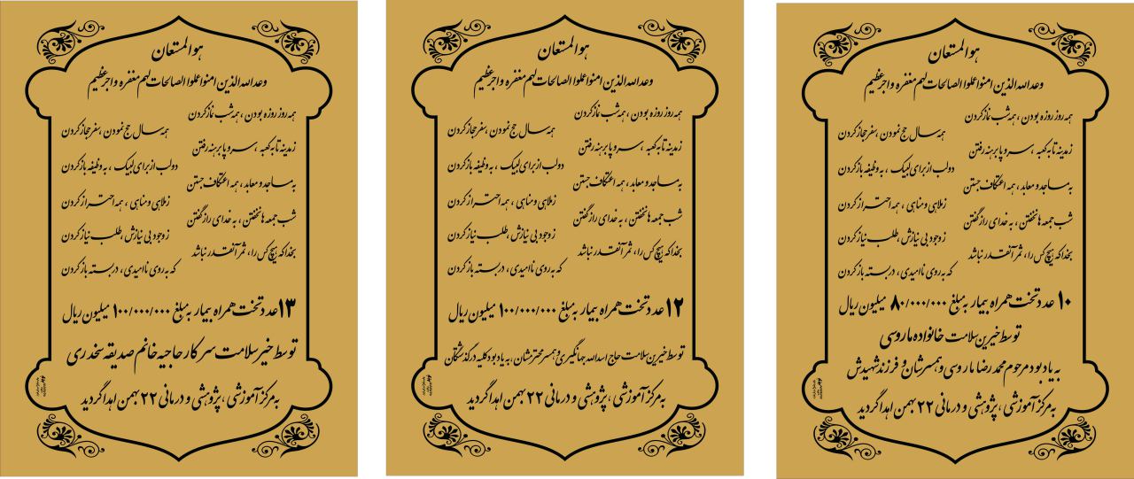 خاطر نشان می شود آقای ماروسی از همکاران گرامی دانشکده علوم پزشکی می باشند که به نیت پدر و مادر مرحوم و برادر شهید خود این کار خیر را انجام داده اند و سایر خیّرین نیز در راه کسب رضایت خداوند متعال دست به انجام عمل خیر زده اند.