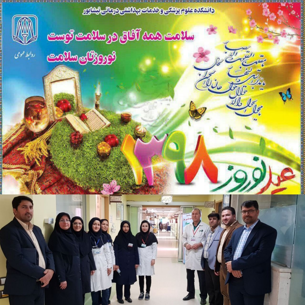 اعظم مقدم پاشا رئیس ادراه پرستاری دانشکده علوم پزشکی نیشابور روز گذشته از بخش های اورژانس بیمارستانهای حکیم ،22بهمن و خیریه قمر بنی هاشم بازدید و با تبریک عید نوروز به همکاران پرستار و شاغل در محل کار از نزدیک در جریان خدمت رسانی به مسافرین نورزی قرار گرفت .